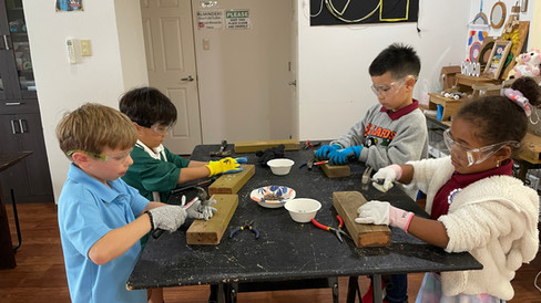 In Grade 1M Design class, as part of the “Live and Let Live” IPC unit, students completed a porcupine woodworking project. The focus of the activity was on developing the ability to safely use tools under adult guidance. Students followed the design process by planning their project, practicing hammering techniques, and preparing their materials by smoothing the wood. They then used hammers to carefully drive nails into the wood to represent the porcupine’s quills, while wearing appropriate safety gear. To complete the project, students added color and decorative elements. As part of their reflection, they created videos on Seesaw to explain what they had learned throughout the process.