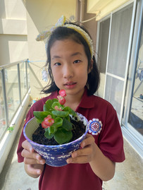 In addition, students explored plant propagation using cuttings such as pothos, aloe vera, and elephant ear plants. These were placed in cups around the classroom to receive sunlight, giving students another opportunity to observe root development. As part of the experience, students also painted their own plant pots and planted flowers, further enhancing their connection to the unit.